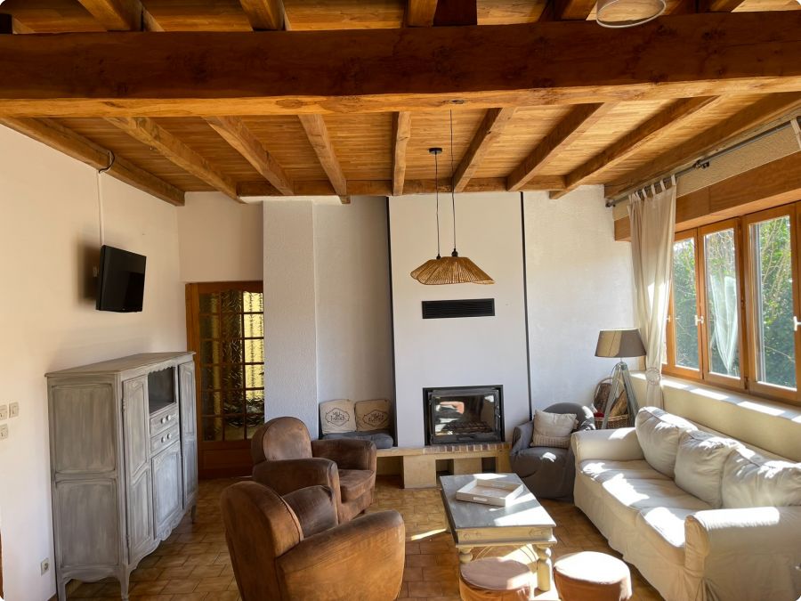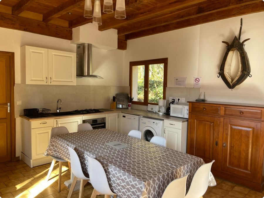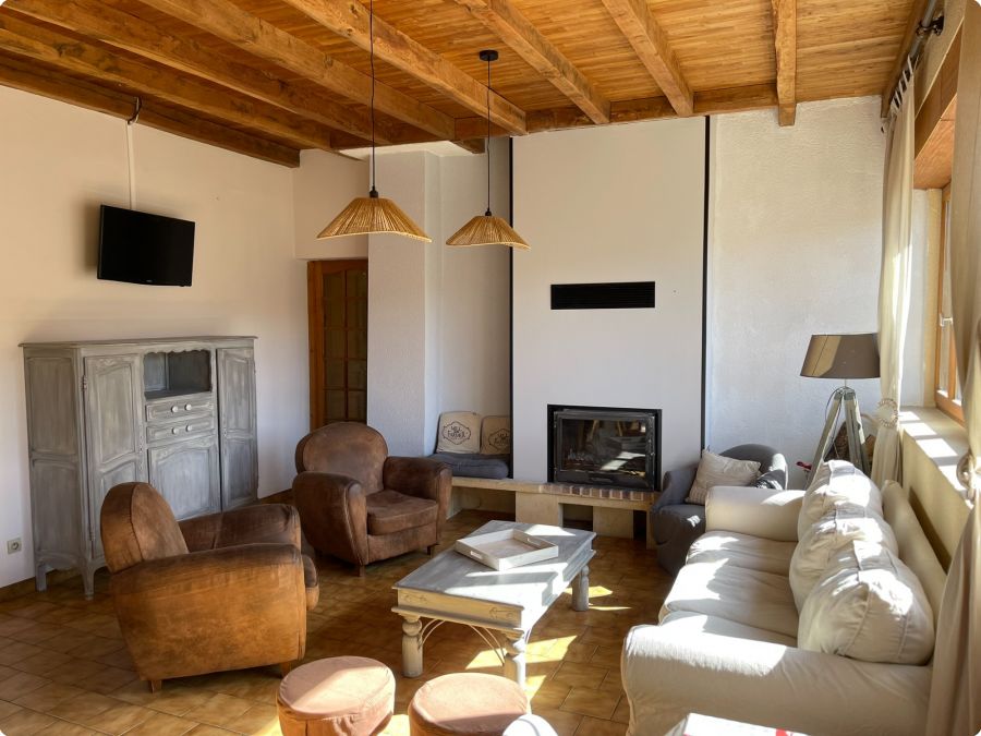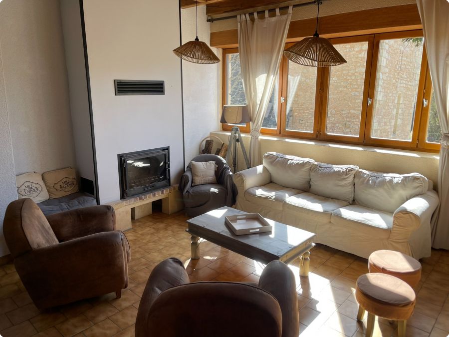 Le Fournil est le plus grand de nos logements avec ses 92m², ses 4 chambres, son vaste et très lumineux séjour/salle à manger avec cuisine ouverte et cheminée fonctionnelle, ses 2 salles de bain et 2 toilettes. Il s’étend sur toute la partie haute de la bâtisse et surplombe notre petit village avec son église du XIIIème siècle (les cloches sonnent seulement à 12h et 19h !!!).
